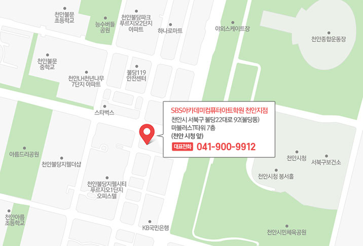 | 주소 | 충남 천안시 서북구 불당22대로 92 (불당동) 마블러스T타워 7층 |